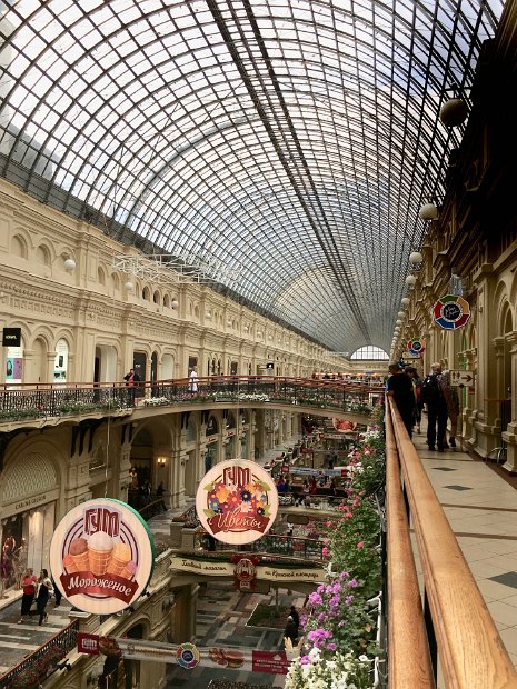 Notre guide Elena nous propose de déjeuner dans la galerie marchande du célèbre Goum.