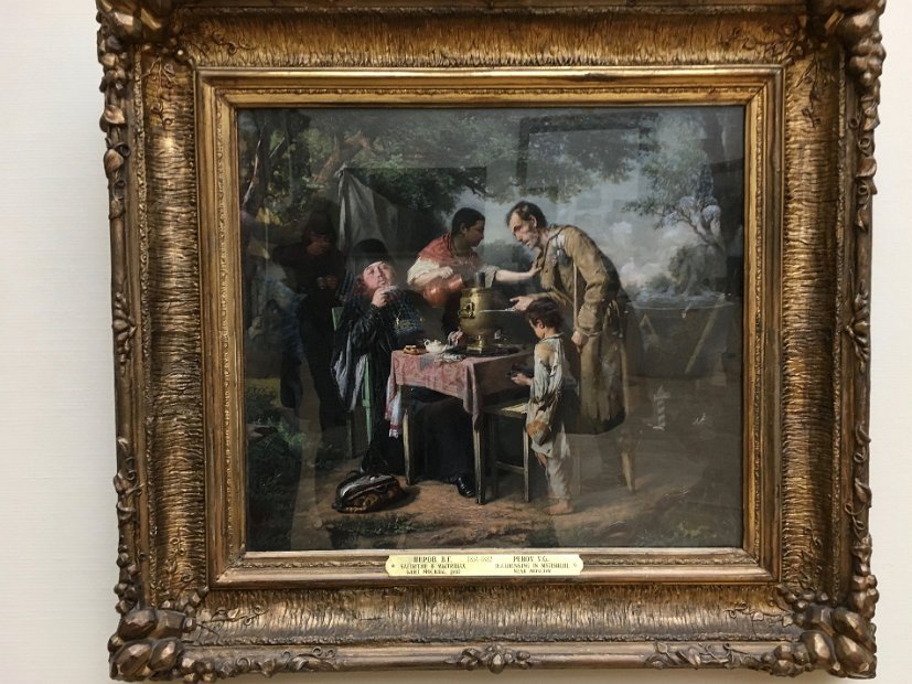 Un membre du clergé prend le thé dans une pauvre famille à Mytishchi par Vassili Perov (1862)